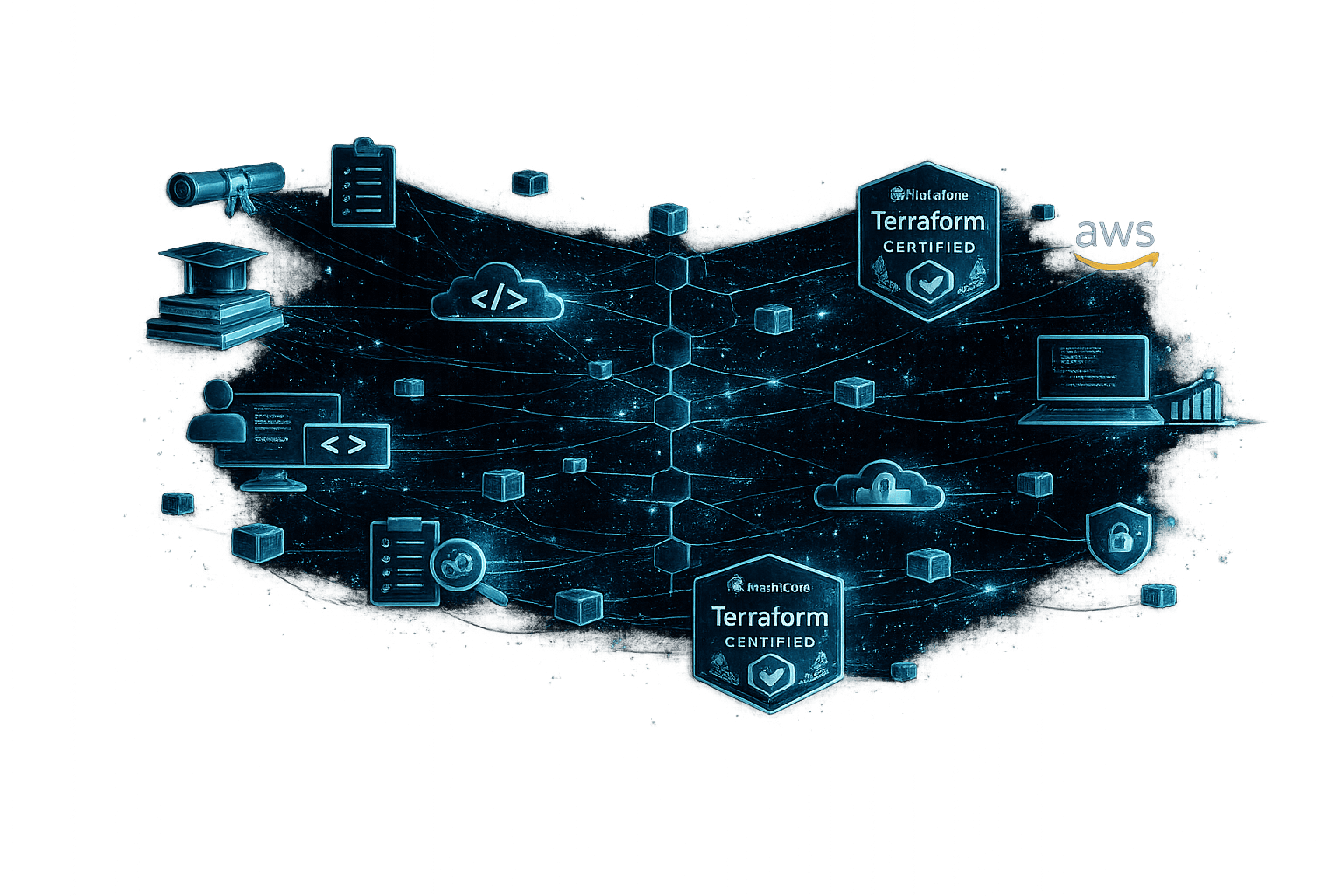 The course follows a practical path—from fundamentals to enterprise-grade multi-account and multi-cloud setups—reinforced with hands-on labs.